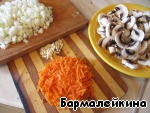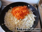После добавляем натертую морковь и мелко нарезанный чеснок.