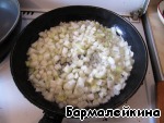 Жарить ее надо буквально 2 минуты, чтобы она была полусырая, солим и перчим нашу начинку по вкусу. -