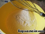 Хорошо перемешав, всыпаем муку постепенно и хорошенько перемешиваем.