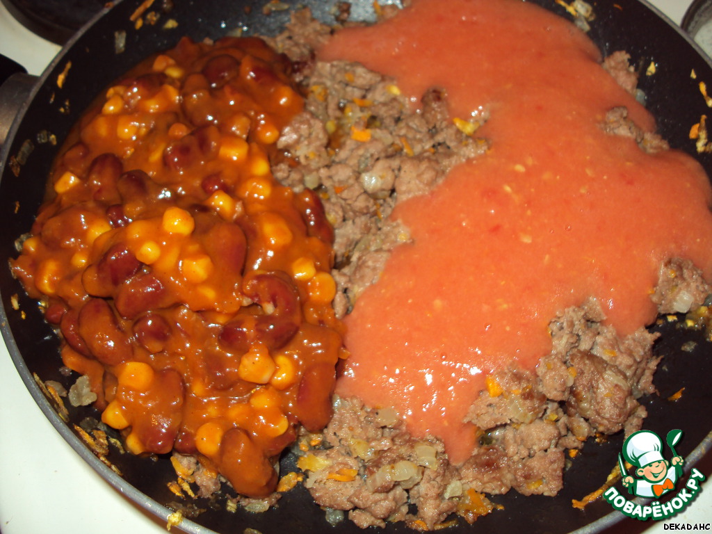 Лазанья с фаршем из индейки, с фасолью и кукурузой.