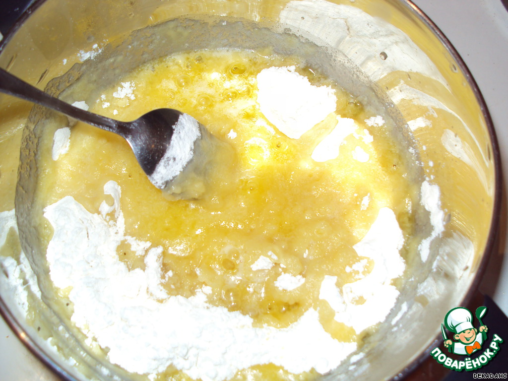 Помешивая, влить молоко. Варить до лёгкого загустения.