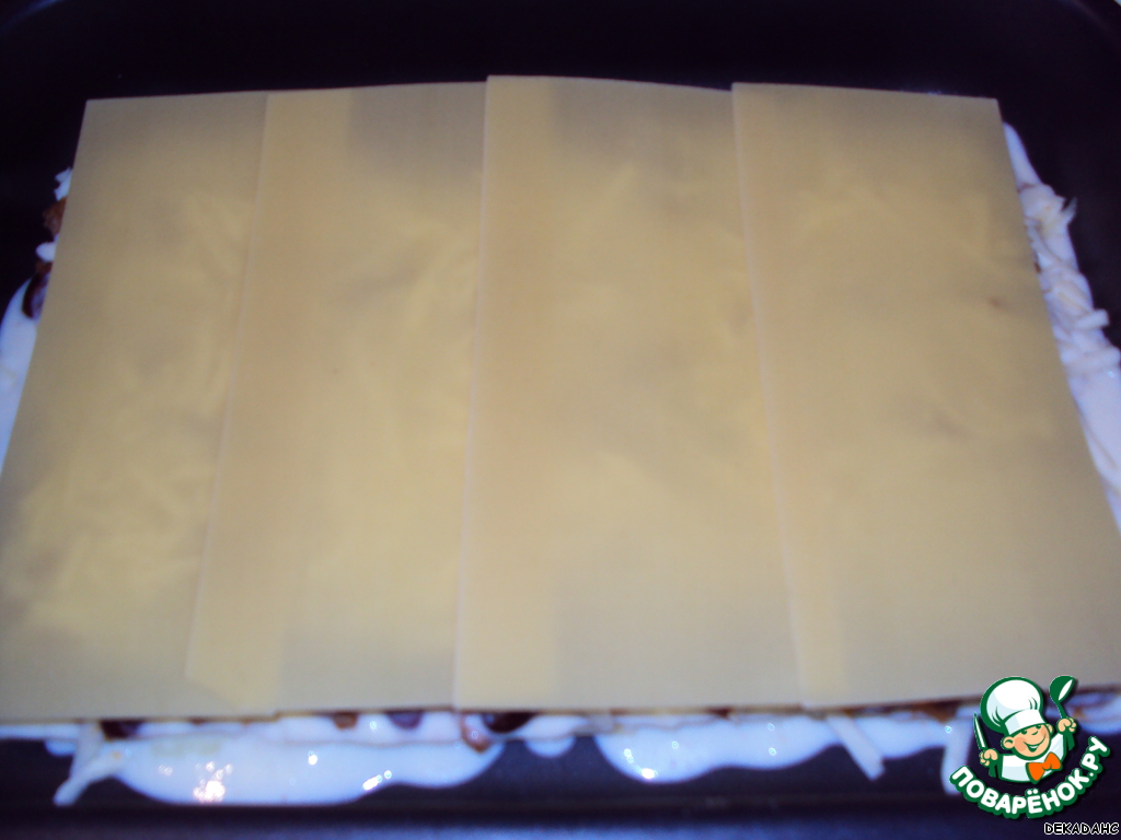 Последний слой по желанию можно накрыть листами лазаньи, я не накрывала. Отправляем в духовку (180град.) на 40 минут. Достаём, посыпаем сыром и ещё на 10 минут.