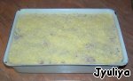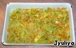 Сыр натереть на мелкой терке. Посыпать сверху. Поставить в горячую духовку на 60 минут.