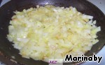 Мелко режем лук и карамелизуем, то есть в лук при жарке я добавляю немного соли и сахара.
