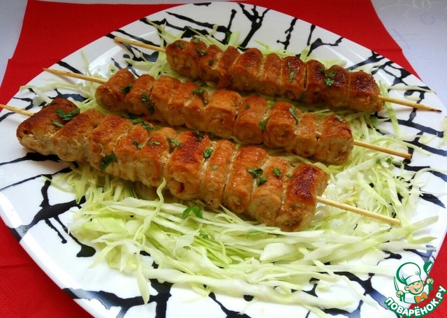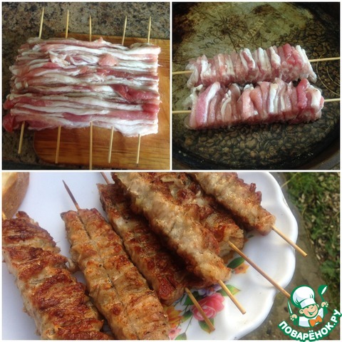 Подсмотрела в магазине как делали эти мясные шпажки. Решила дома повторить... Занимательно, однако, скажу я вам. Если заинтриговала, смотрите здесь.
