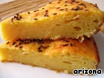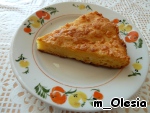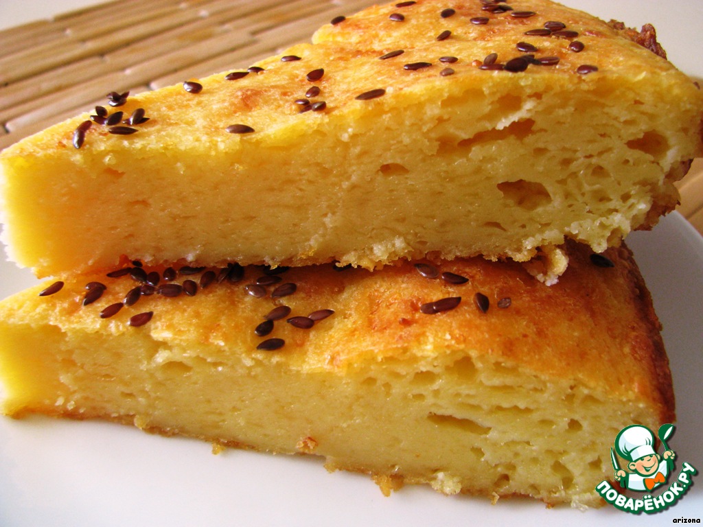 Разогреть духовку до 180 градусов, выпекать до золотистой корочки, примерно 25 минут. У меня вышло два пирога. Я резала горячим, но когда он остывает, режется намного лучше и становится ноздреватым.