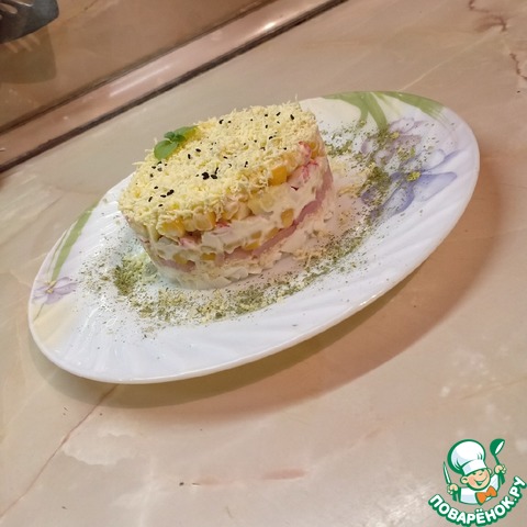 Салат с крабовыми палочками. Рецепт из кулинарной газеты. Именно под таким названием он там и был.
