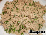 Куриную печень отвариваем. После закипания варить 7 минут. Остудить. Затем делаем фарш, добавляем соль, перец, лук.