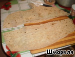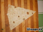 Или Вы имеете ввиду - На треугольник кладем фарш, немного, для равномерного распределения по поверхности лаваша?