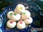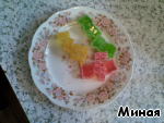 По традиции в дырочку ложкой кладут каплю желтка, но я решила положить нарезанный мелко мармелад.