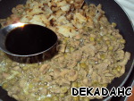 Добавляем к почкам. Поливаем бальзамическим уксусом. И тушим минут 5. Со временем не переборщите, а то почки будут твёрдыми.