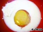 Соединить 1 яйцо + 50 г сахара + 100 г молока + 1 ст.л. муки + ванильный сахар,