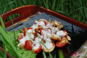 Этот салатик должен понравиться Вам, как украшение романтического тeплого июньского вечера. За основу его я взяла курочку "Игра блиц" Ирочки dog-rose.