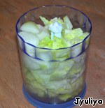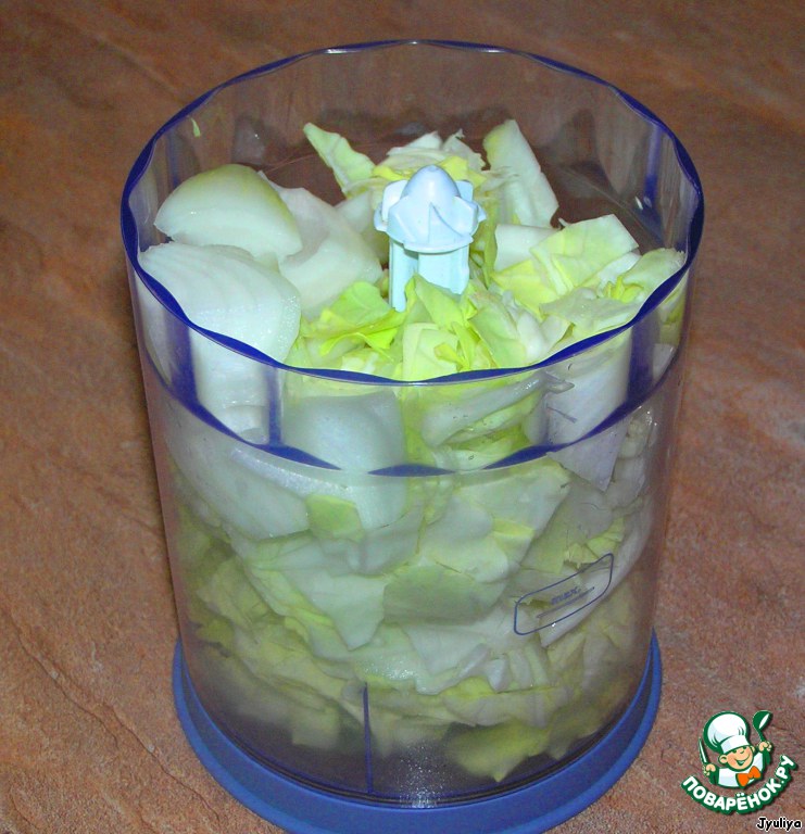 Лук (1 шт.) и капусту измельчить в блендере (достаточно мелко).