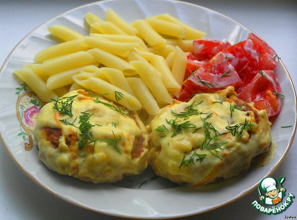 Соус: сливочное масло растопить на сковороде, добавить муку, обжарить до золотистого цвета. Аккуратно влить стакан молока, все время помешивая, чтоб не было комочков. Немного остудить. Добавить сметану, сыр (тертый на мелкой терке) и морковь + лук. Залить соусом биточки и в горячую духовку на 30 минут.