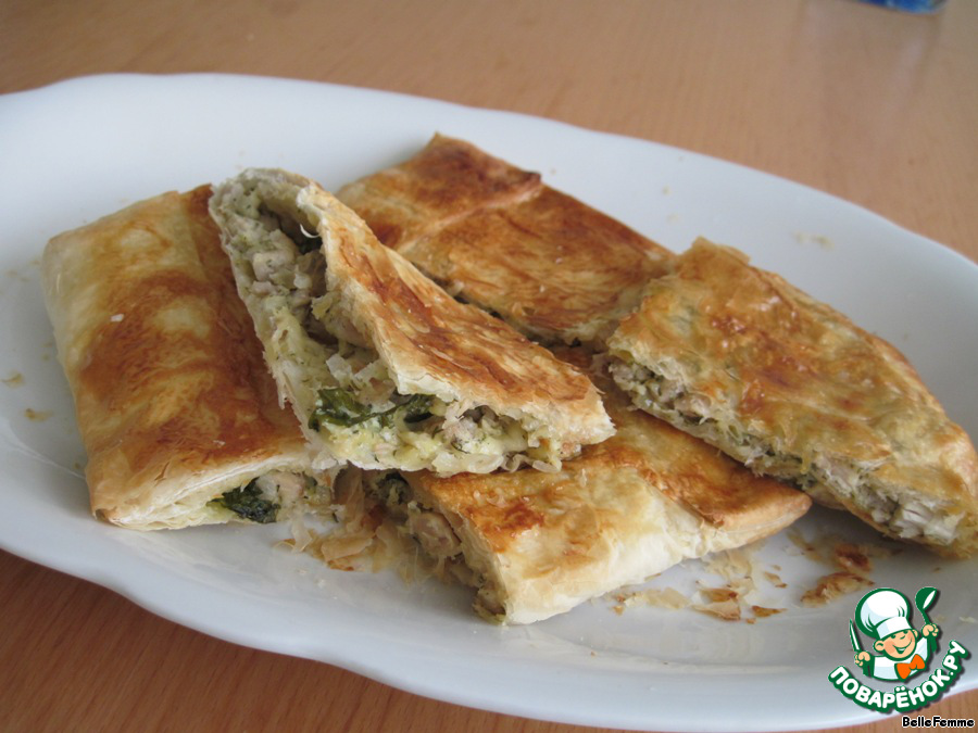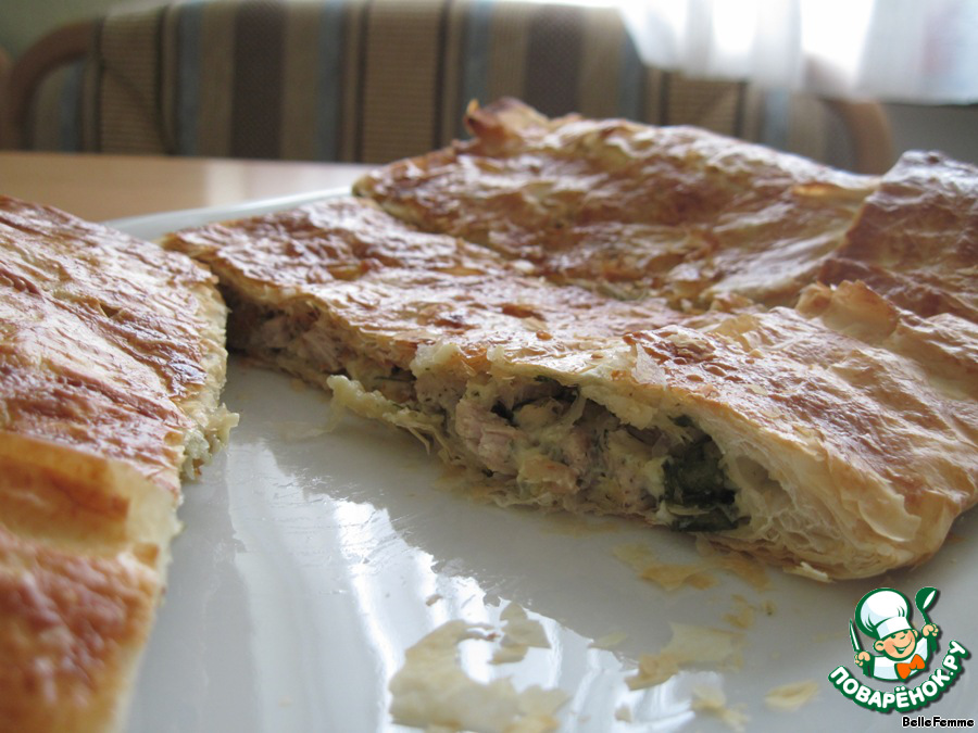 Пирог из слоеного теста с сочной начинкой. Взято из журнала "Народный доктор", по рецепту Натальи Б. , п. Преображенский Красноярского края.