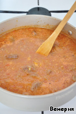 Добавить нарезанные помидоры, томатную пасту, йогурт, воду, посолить (по вкусу), готовить на медленном огне в течение часа, или до полной готовности мяса (мясо должно быть очень мягким).