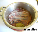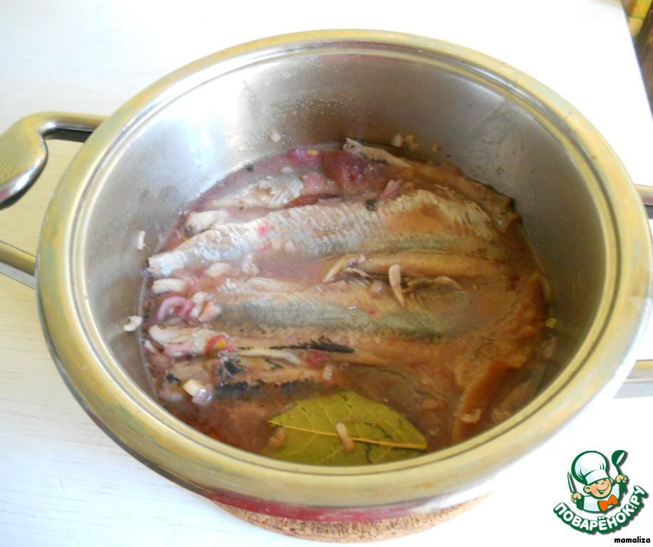 В кипящий маринад кладем подготовленную сельдь и варим 7 минут.