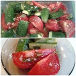 Залить этим маринадом подготовленные овощи. То, что маринад покроет не полностью огурки-помидорки, не страшно - овощи дадут сок.