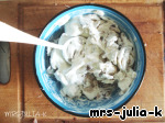 Смешать грибы со сметаной и тоже немного присолить.