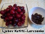 Теперь займёмся черешней и шоколадом. Из черешни достаём косточки, а шоколад нарезаем или просто руками разламываем на маленькие кусочки.
