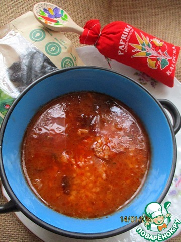 Острый суп харчо. Не совсем оригинальный рецепт, но, на мой вкус, максимально приближен к оригиналу. К тому же, для приготовления не нужно никаких специальных компонентов.