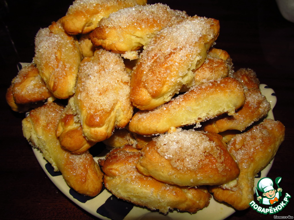 - Сахар (3 ст.л. в тесто, остальное посыпать) — 50 г