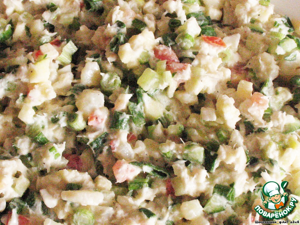 • Заправить сметаной или майонезом, соль и перец по вкусу.