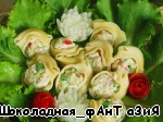 • Поставить салат охлаждаться в холодильник. Отварить в подсоленной воде "Ракушки" (не ставьте их вариться раньше, чем сделаете салат). Слить воду с "Ракушек" и выложить на тарелку, чтобы не деформировались, держали форму. Разложить салат в "Ракушки", украсить.