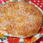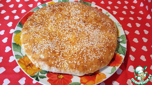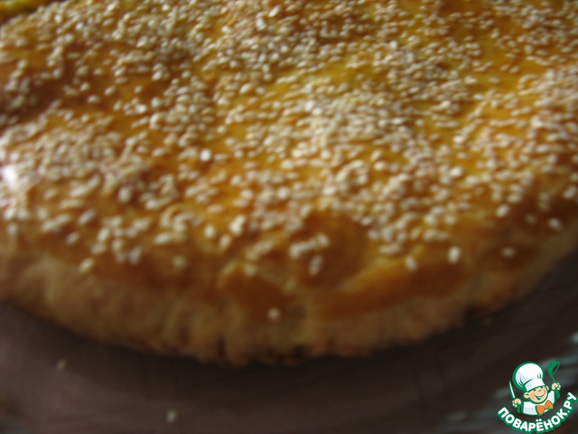 Смазать лепешку желтком, посыпать кунжутом и выпекать 20-30 мин.