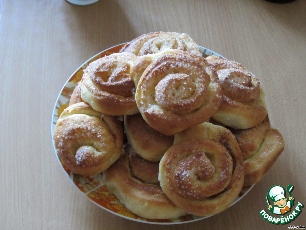 Этот рецепт существует в нашей семье более 30 лет. С небольшими отступлениями он сохранился с тех пор. Делается достаточно быстро. Подобные булочки тут есть, но именно такого рецепта нет, я, честно, искала. Очень хочется, чтобы вы оценили мой дебют тут, давно собиралась это сделать.