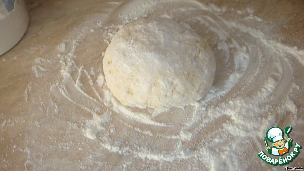 Постепенно добавляя муку, замесить тесто. Оставить отдыхать. Поскольку тесто поднимается быстро - пока включить духовку для разогрева (у меня - газовая).