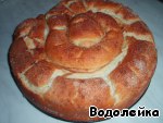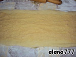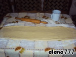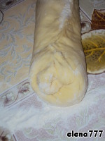 На присыпанный мукой стол выложить тесто (если тесто прилипает, то подбавьте ещё чуточку муки), скатать в длинный жгут толщиной 6-7 см.