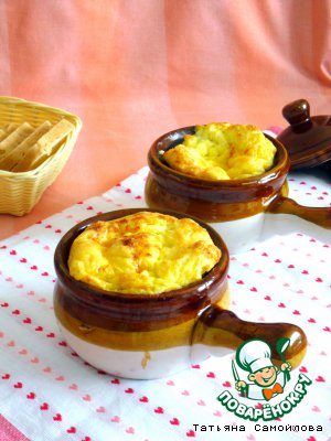 Ввести взбитые белки в массу и аккуратно перемешать. Выложить в формы, сверху посыпать оставшимся сыром. Запекать 50 минут при 180 градусов. Приятного аппетита!!!