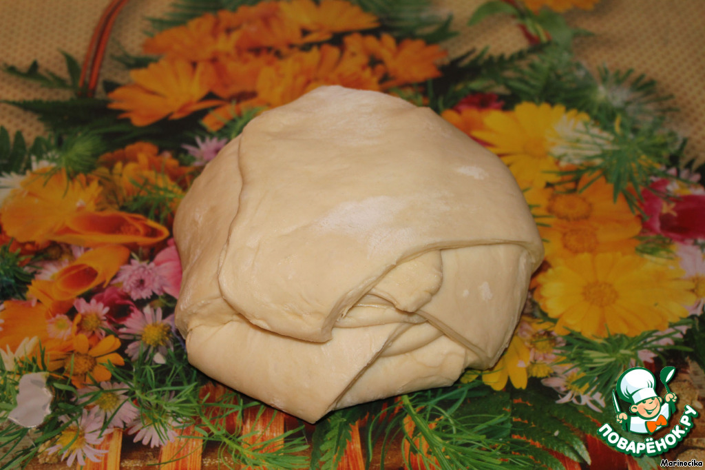 - Мука пшеничная / Мука (тесто 1 - 500 г, тесто 2 - 70 г, начинка - 0,5 ст. л.) — 580 г
