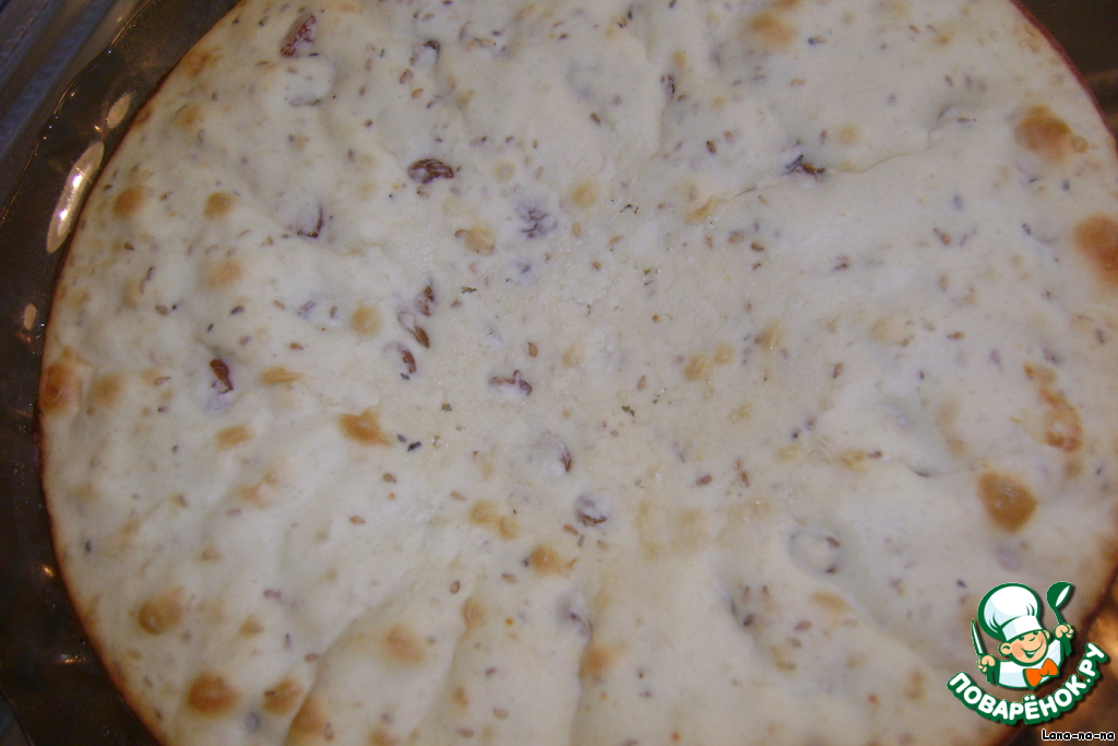 Затем, по очереди: кефир, мука, маргарин, изюм, кунжут. Тесто готово.