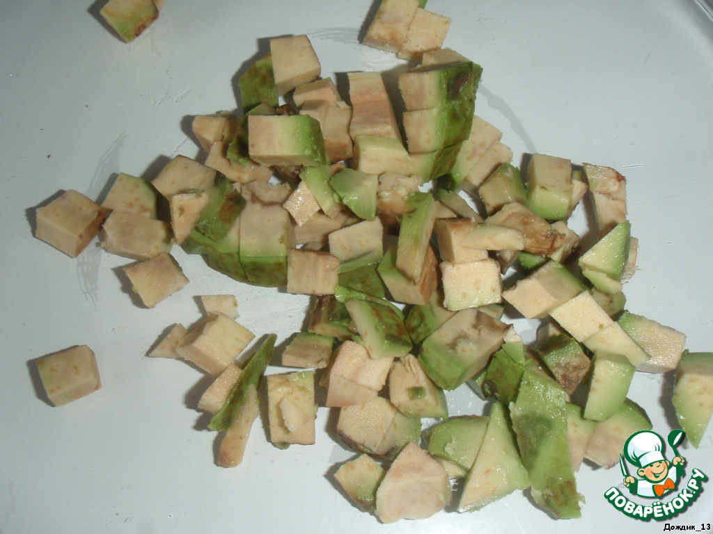 Авокадо порезать кубиками.