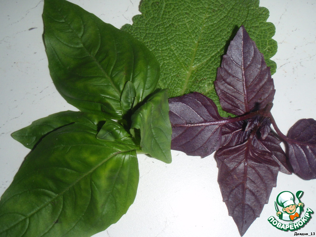 - Базилик (свежий; я брала зеленый и фиолетовый) — 2 шт