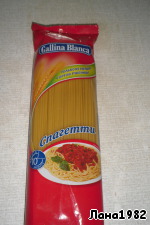Тем временем отвариваем спагетти (я взяла вот такие, из твердых сортов пшеницы) до состояния al dente (т.е «на зубок»).