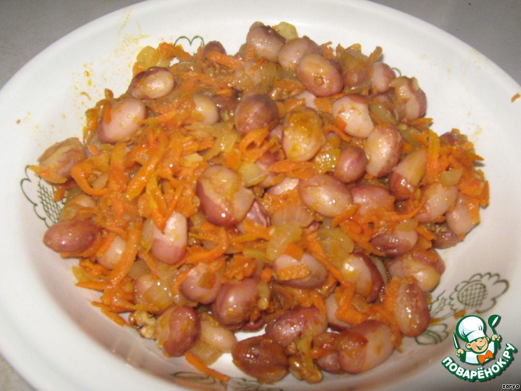 Фасоль замочить в холодной воде на ночь, а потом сварить почти до готовности, присолив. Слить воду.