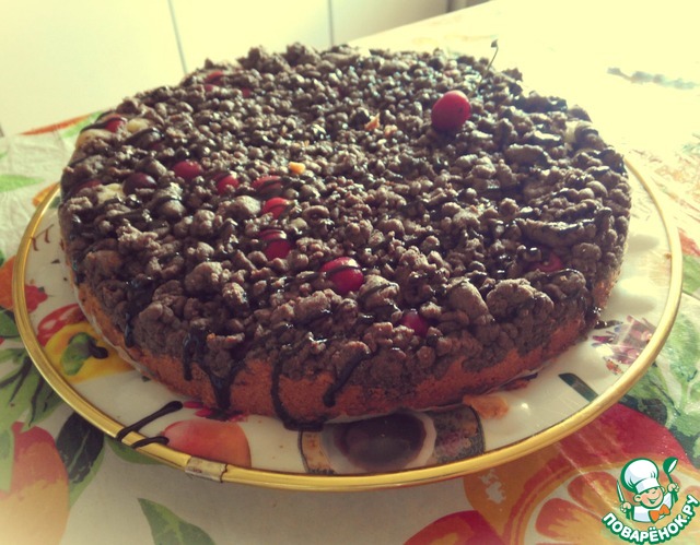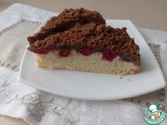 Пирог с вишней и шоколадной крошкой. Сегодня попробовала впервые. Ну ооочень вкусно. Не могу не поделиться! Названия пирога не знаю, поэтому пусть он носит имя чудесной женщины, которая и поделилась этим замечательным рецептом.