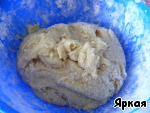 Замесить тесто. Для этого: мягкий маргарин растереть с сахаром, добавить три яйца, ванильный сахар; взбить полученную смесь. Муку (250 г) просеять вместе с разрыхлителем. Хорошенько перемешать.