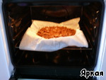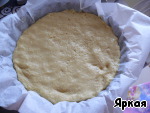 Тесто выложить в форму, застеленную пергаментом, разровнять руками.