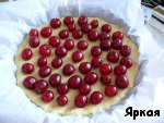 Вишню промыть, удалить плодоножки (можно и косточки удалить, если Вас это смущает) и выложить на тесто. На этой стадии все выглядит уже безумно аппетитно)))