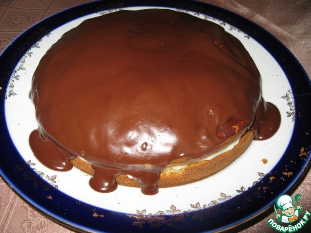 Решила немного отступить от Вашего и оригинального рецепта и разрезала пирог на три части. Нижнюю часть пропитала глазурью из шоколада, сверху нанесла пудинг.