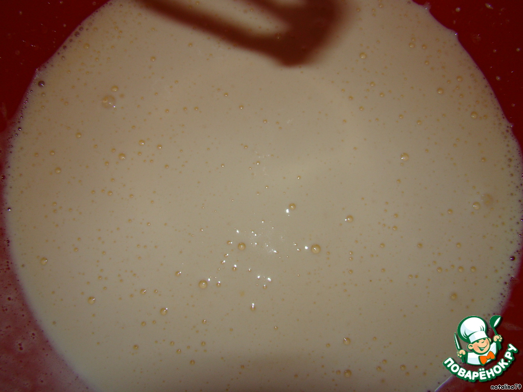 Молоко ставите на плиту, доводите до кипения, в это время достаете яйца из холодильника, отмеряете сахар, начинаете взбивать. Молоко закипело, отключили. Яйца взбили. Ингредиенты отмерили, молоко влили.