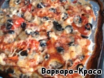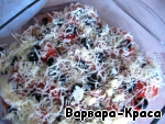 4. На мелкой терке натираем твёрдый сыр и посыпаем нашу будующую запеканку. Отправляем в разогретую до 200 градусов духовку минут на 30-40.
