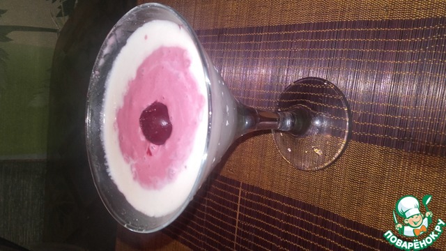 В оставшуюся массу добавляем сок черешни (достаточно просто выдавить сок из ягодки руками - этого достаточно, или измельчить блендером всю ягоду - это тоже на ваше усмотрение)
