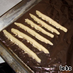 6. Выкладываем с расстоянием, так как в процессе выпечки палочки разбухают. Фольгу ничем не смазываем, так как печенье и так жирное