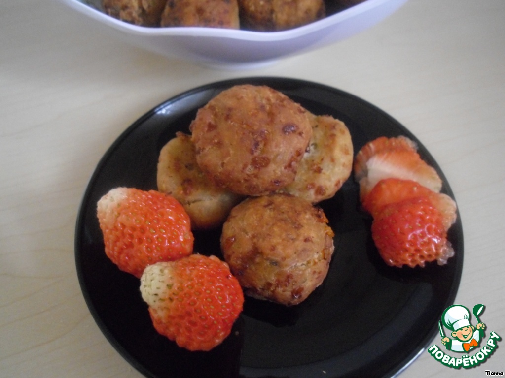 Руки смазать маслом и, отрывая кусочки теста, скатывать их в шарики. Обжаривать в масле несколько минут до золотистой корочки.
